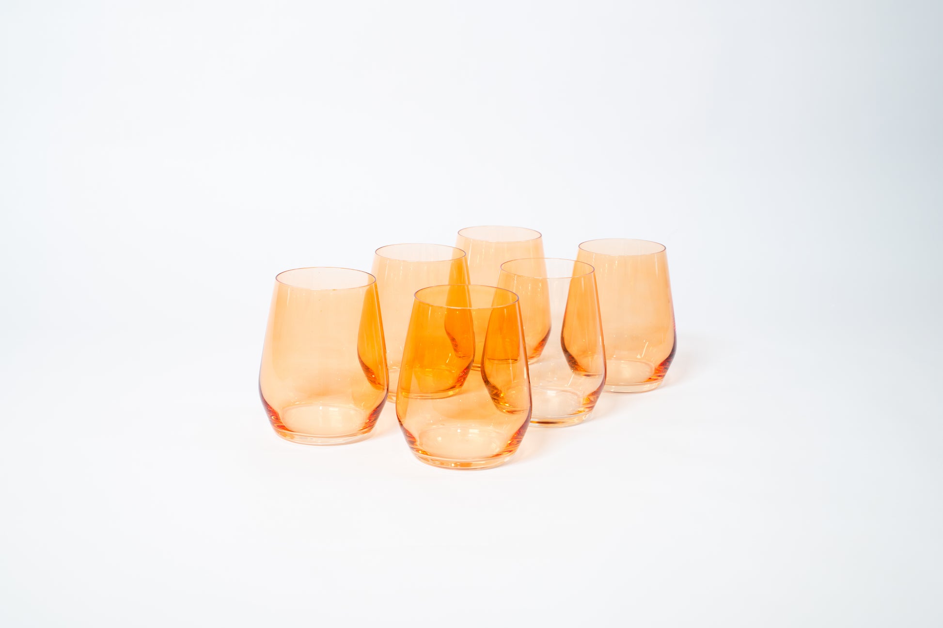 Orange you happy? This shade of orange is the lightest shade of the orange wine glasses. That creamsicle color you love to see on a summer afternoon.
